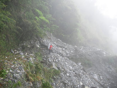 往後的路段,只能以柔腸寸斷來形容,不過在林道35Km處竟還能遇到在林道上割草的近十位原住民,也真是奇怪,林道在34km起就已中斷,幹嘛還要割草到35Km?